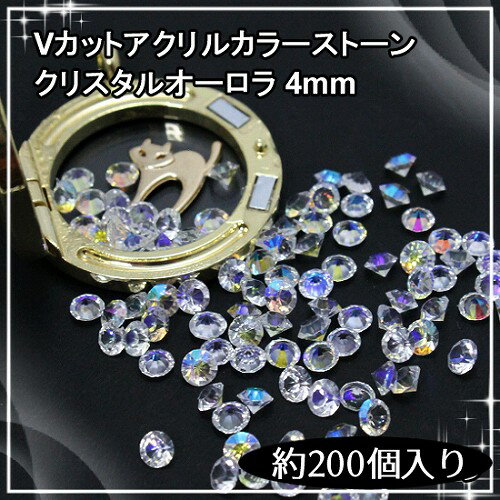Vカットアクリルカラーストーン クリスタルオーロラ 4mm 約200個