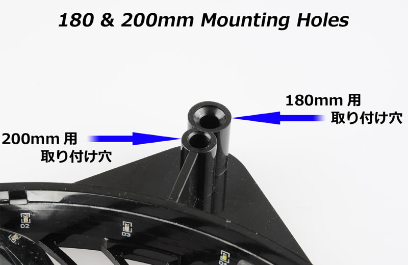 180mm/200mmサイズに対応するユニバーサルマウントは、汎用性を高め180mm、200mmサイズに対応したケースに取り付けが可能です。