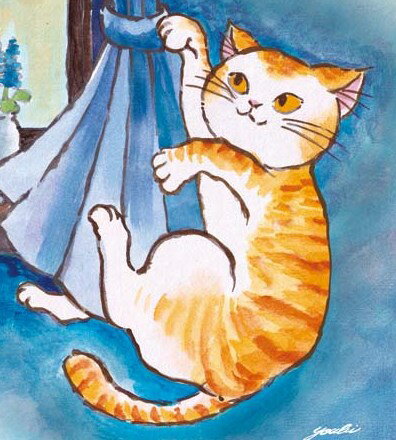 [額絵] しあわせをまねく絵 幸せのねこ 【わんぱくねこ】 千采加 洋美 [大] [G4-AN033-d]【代引き不可】サイズ:幅48×高さ39cm高精彩特色技術絵本紙:新絹本額:木製(前面アクリルカバー)わんぱくねこ勢いよくジャンプし、カーテンにしがみ付き遊ぶねこの元気な姿を描いた作品。