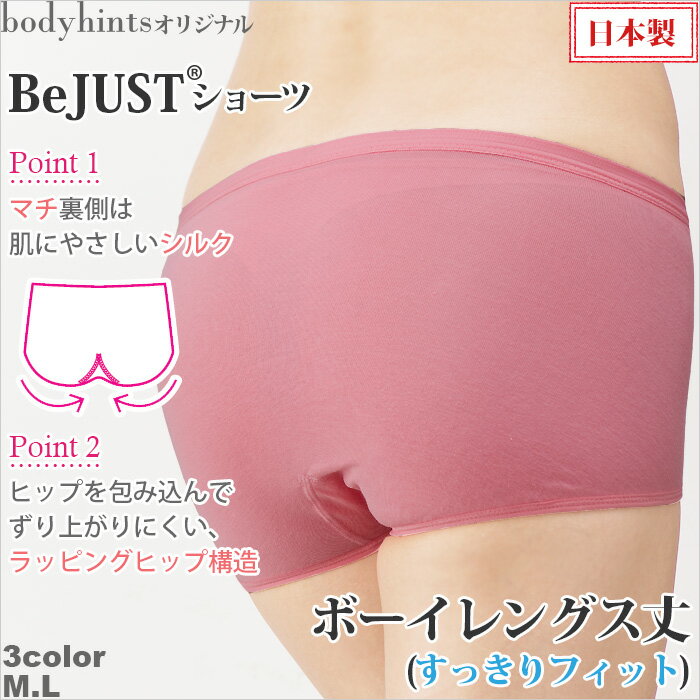 はき心地で選べるBeJUSTショーツ すっきりフィット ボーイレングス丈 日本製 マチ裏シルクで肌にやさしい ヒップを包み込んでずり上がりにくいラッピングヒップ構造(特許出願中)