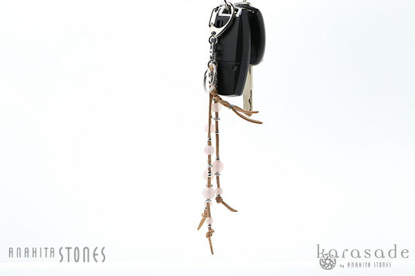 レザーキーホルダー ナチュラル ローズクォーツ 恋愛運 結婚運 魅力UP 縁結び 出雲 癒し 天然石 パワーストーン